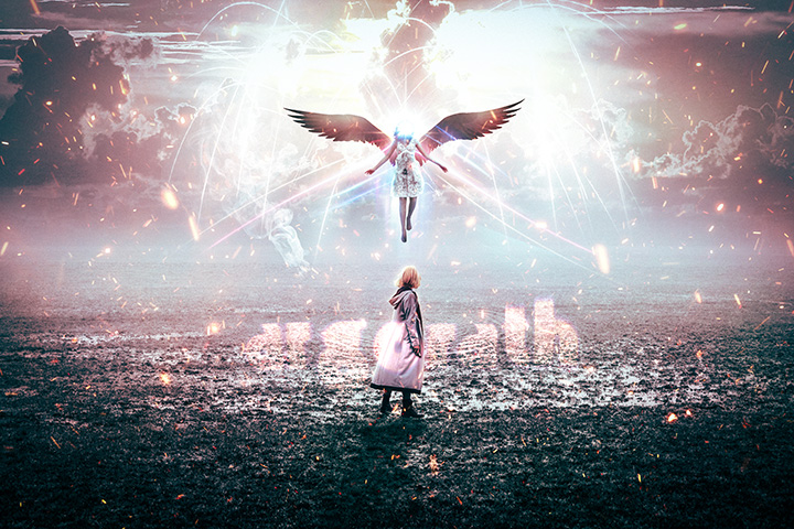 My initial concept for the piece was having the Doctor holding the planet in her hands, but I couldn't find the right images to composite together to make it work. Instead, I came up with the idea of the Doctor in the sky looking down on the planet below, and found two images of her to composite together that fit perfectly. A friend of mine, Arbrax, managed to get the original idea to work and created it herself.